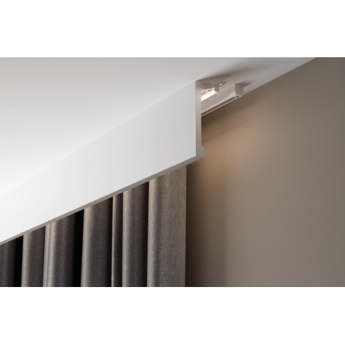 Listwa karniszowa z kolekcji Elegance gustownie wykończy okna w Twoim mieszkaniu. Wzbogacona o technologię LIGHT BLOCKER – nie przepuszcza światła emitowanego przez taśmę LED, którą można umieścić w specjalnie do tego przeznaczonej wnęce. Razem z listwą przypodłogową z tej samej kolekcji sprawią, że wystrój całego wnętrza będzie spójny i estetyczny. Montaż polega na docięciu listwy do określonego wymiaru oraz przyklejeniu jej do sufitu. Użycie najwyższej jakości surowców przekłada się na gęstość i odporność listew karniszowych.